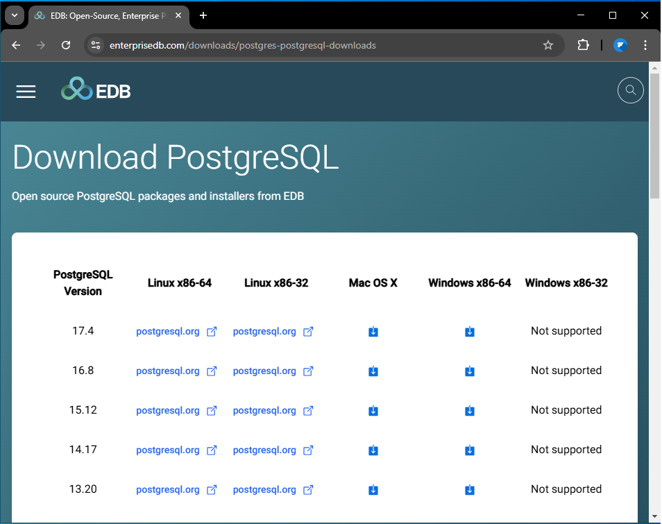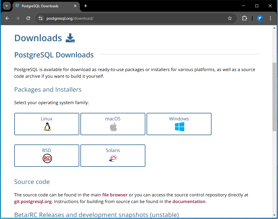 PostgreSQL có thể chạy được trên những hệ điều hành khác nhau như Linux, Mac OS và Windows. Chọn phiên bản PostgreSQL phù hợp với Windows của bạn (64-bit).