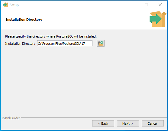 Chọn thư mục cài đặt (mặc định: C:\Program Files\PostgreSQL\14\).