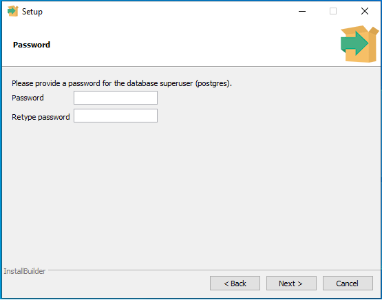 Đặt mật khẩu cho user postgres (mặc định là superuser). Bạn nên đặt lại mật khẩu, lưu ý rằng bạn sẽ dùng thông tin này để có thể đăng nhập vào hệ thống PostgreSQL sau này.