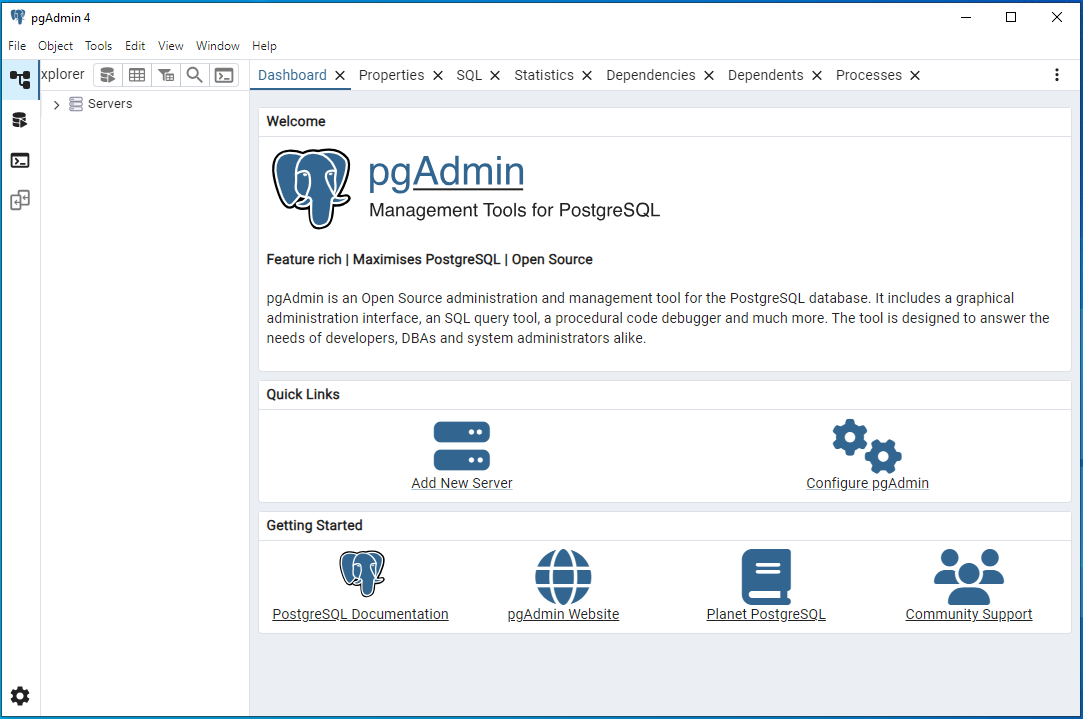 pgAdmin sẽ khởi động lên